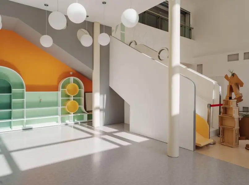 值得一提的是,此次詠竹幼兒園選擇的塑膠地板,均來(lái)自擁有深厚技術(shù)積累的法國 Gerflor 集團。作為全球領(lǐng)先的地面與墻面材料解決方案提供商,潔福集團始終專(zhuān)注于創(chuàng )造兼具創(chuàng )新性、設計感與可持續性的產(chǎn)品,其塑膠地板不僅能滿(mǎn)足不同場(chǎng)景的技術(shù)性需求(如耐磨、防滑、環(huán)保等),更能通過(guò)豐富的色彩與紋理,為空間裝飾提供更多可能。正是這種 “技術(shù) + 設計” 的雙重優(yōu)勢,讓潔福產(chǎn)品成為了教育、醫療、商業(yè)等多個(gè)領(lǐng)域的優(yōu)選,而在詠竹幼兒園的案例中,也再次證明了其對 “兒童友好型空間” 的深度適配能力。